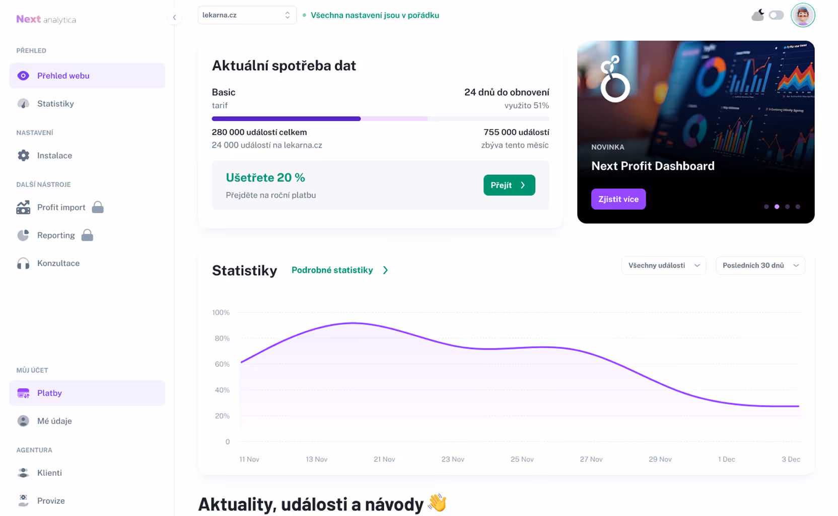 Uživatelské sekce a administrace